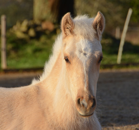 Il est le fils de Dorni (Deinhard B) et Django K (notre premier poulain de l élevage). Django est le fils de Montessa et de l étalon DRP Okay Big Bambu ( origine New Forest/ arabe). Dorni n était pas prête à accepter l insémination artificielle, donc nous avons laissé faire la nature en pensant que ce croisement serait judicieux. Et nous n avons pas été déçu. Houlenn est un poney bien charpenté, de couleur attactive (palomino). Il est doté d excellentes allures, malgré son jeune âge et une croissance qui le travaille un peu. Houlenn a été présenté au concours d ´élevage France Dressage dans la catégorie 2 ans mâles et s est qualifié pour la finale à Saumur pour 2019 avec 71,5% dont 8/10 au trot. Il a un excellent caractère et est facile au quotidien.